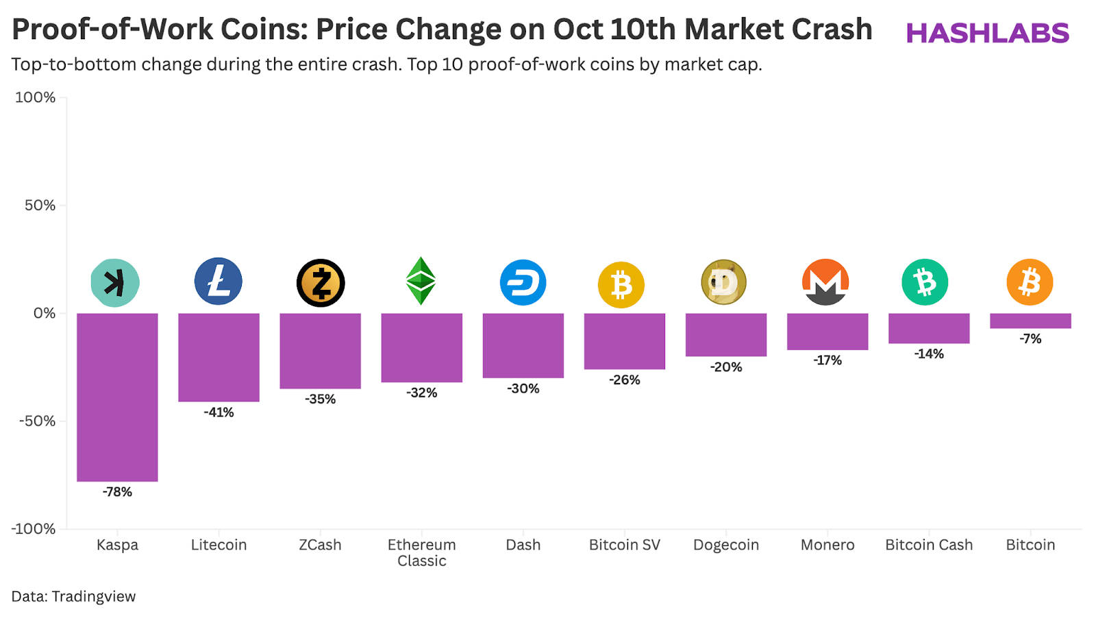 The latest market crash on October 10th was a brutal stress test for all proof-of-work coins. The results were crystal clear.